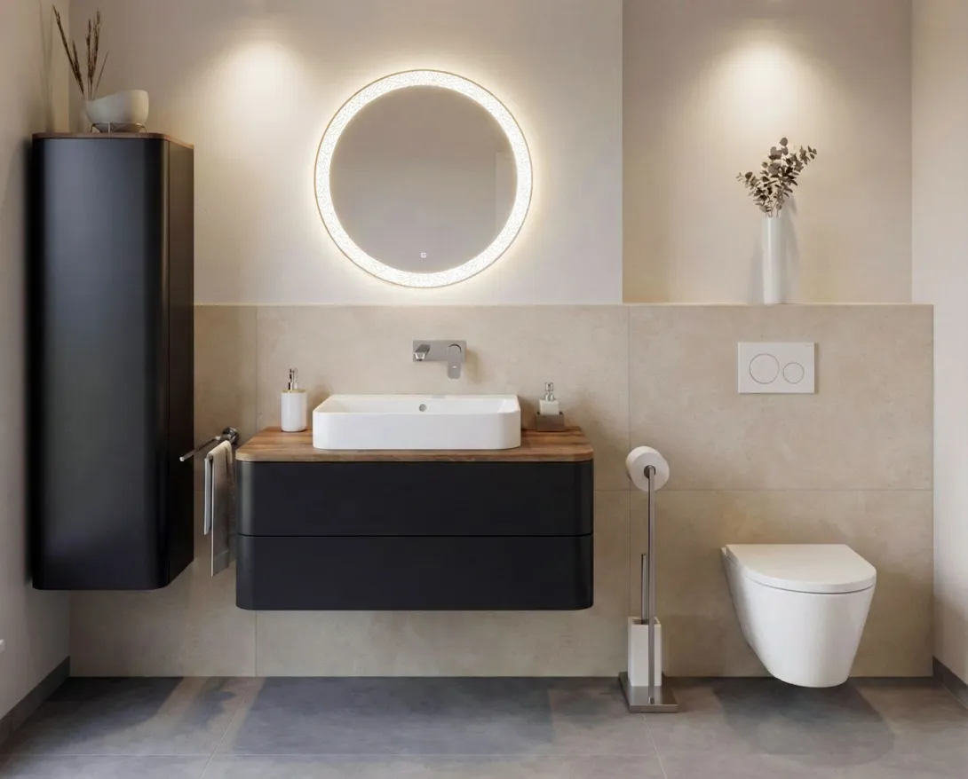 Mit dem Comfort-Bad einher geht eine kreative Fliesenplanung, gehobene Badmöbelgestaltung oder Wellness-Duschlösungen. Alles in allem haben Sie ein Wohlfühlbadezimmer mit persönlicher Note, aufgrund zahlreicher individueller Gestaltungsmöglichkeiten. Ihre Vorstellungen dienen unseren Experten als Grundlage – ein auf Sie zugeschnittenes Badkonzept geprägt von modernem Design und Individualität.