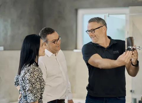Unsere Badausstellung schafft eine Bühne für Qualität und kann deshalb immer nur so gut sein wie die Akteure, die sie gestalten. Unser qualifiziertes Team kennt sich mit Materialien für Wand-, Boden- und Deckengestaltung bestens aus. Und unser Herz schlägt für die Trends und Themen, die in Zukunft wichtig werden. Vom Bad als Wohnraum über das Wassersparen bis zur Digitalisierung.
